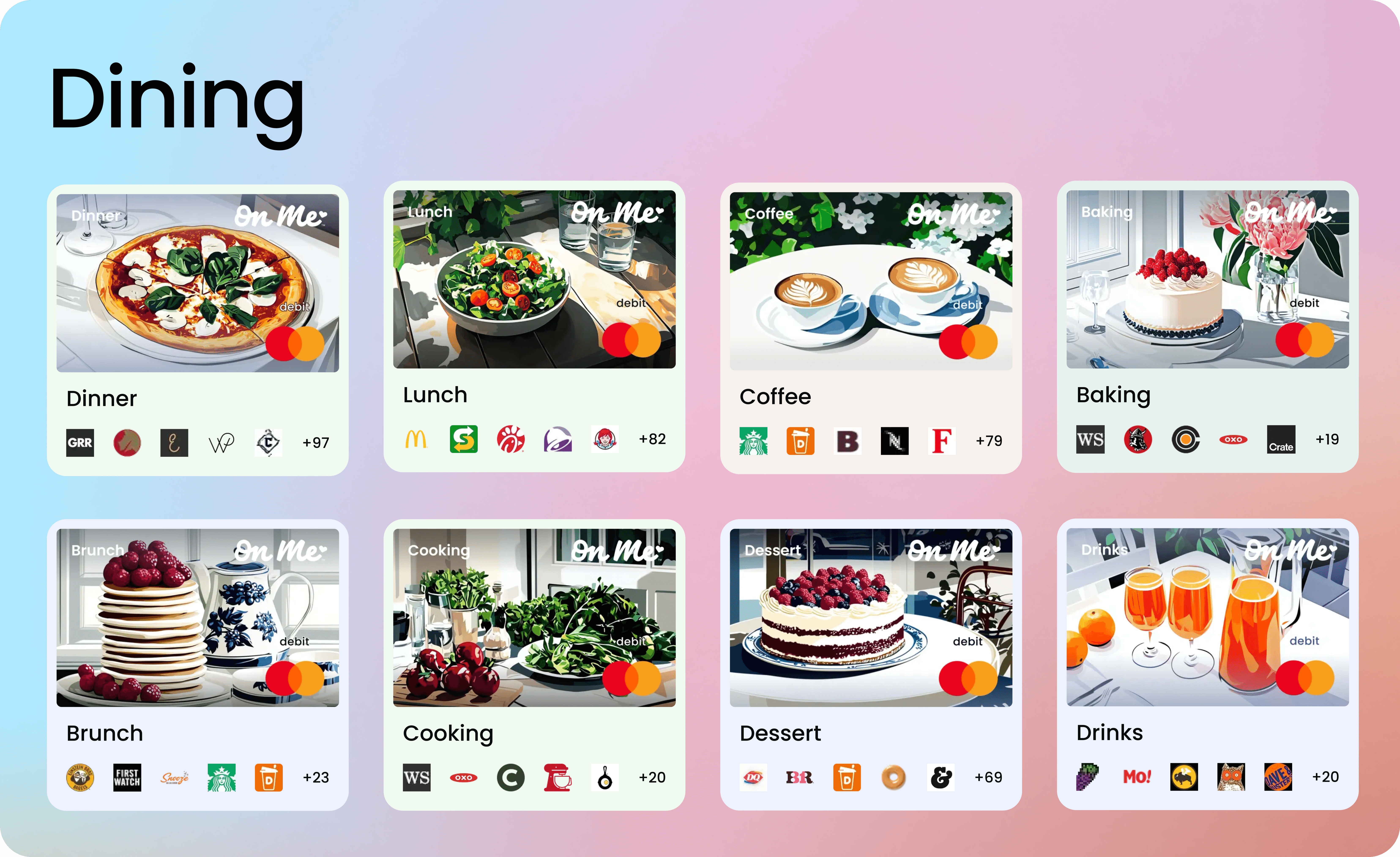 Pick a Cash Card or browse the On Me catalog of 1,000+ brands across dining, fashion, wellness, experiences, and more.